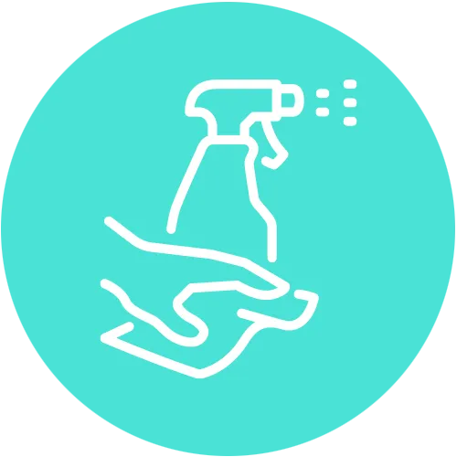 Before/After every class our team uses industrial hospital grade disinfecting solution to clean all surfaces on equipment, and the most commonly toughed surfaces like door knobs, seats, and bags.