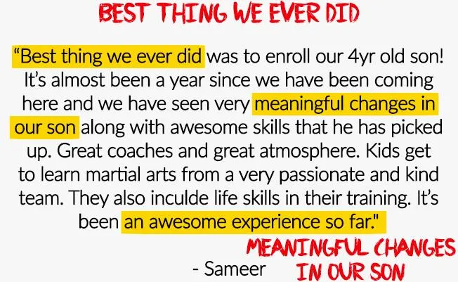 Martial Arts for your child is more than just Punches, Kicks and Takedowns! In the first 7 days you will start to see a shift in them - specifically with their mindset, focus and emotional awareness/control. Over time they'll experience what it means when mental discipline manifests itself at school as well as on the field or playing sports (more so if that's what he/she does).