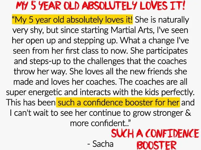 Imagine what your child will be like in just the first 7 days! Kids will gain confidence, learn self-defense skills,& have better focus GUARANTEED!